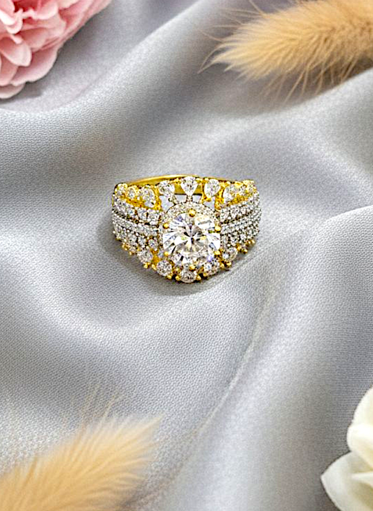 Coruscate Jewels Regal Oval CZ & Pave Statement Ring β Two-Tone Gold-Plated