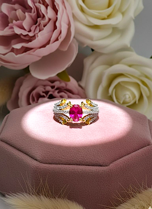 Coruscate Jewels - Adjustable Ruby Stone Statement Ring with CZ Diamonds