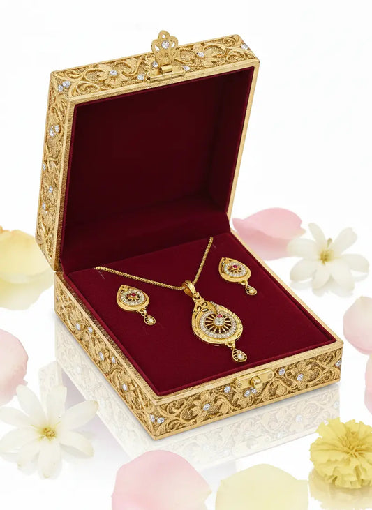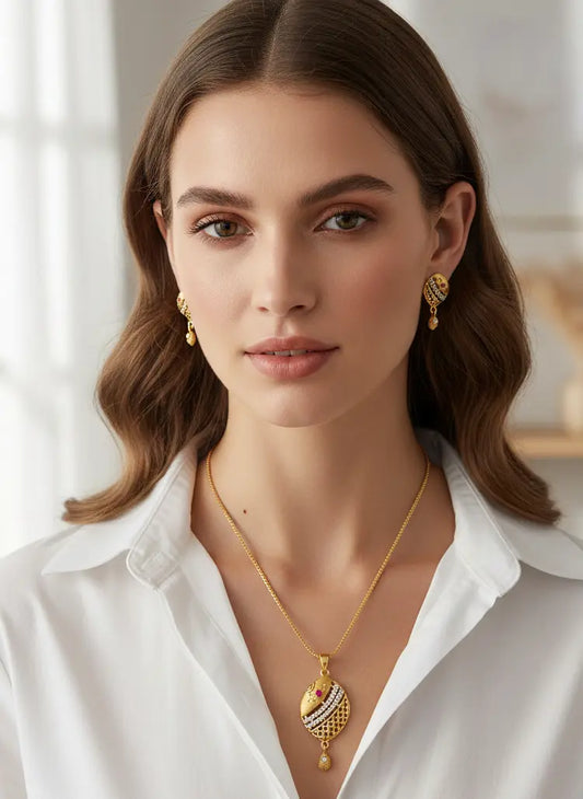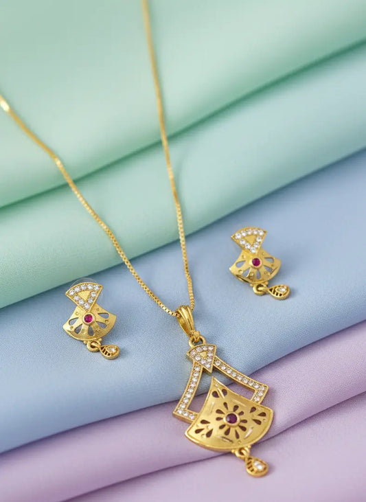 AD Gold Plated Golden Swirl Elegance Pendant Set