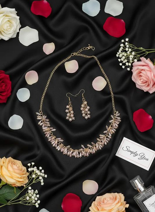 American Diamond Gold-Plated Baguette Diamond Grace Necklace Set