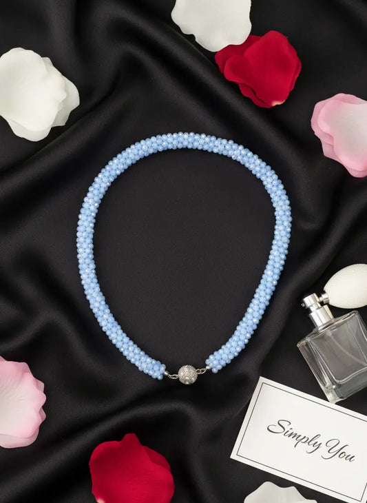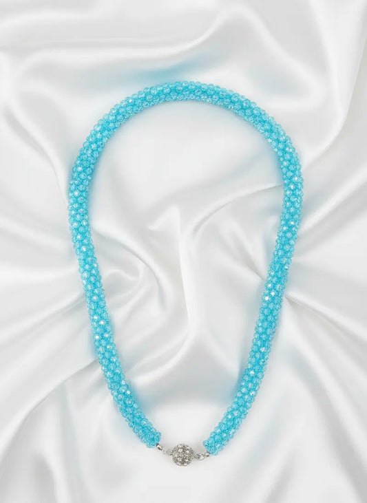 Sky-Blue Shimmer Long Beaded Necklace Set