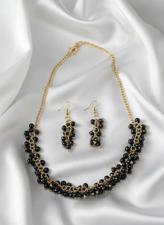 American Diamond Gold Plated Black Pearl Royale Necklace Set