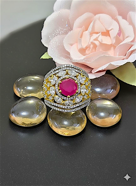 Coruscate Jewels - Adjustable Ruby Stone Statement Ring with CZ Diamonds