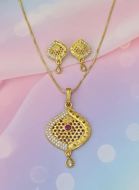 American Diamond Gold Plated Celeste Ruby Drop Pendent Set