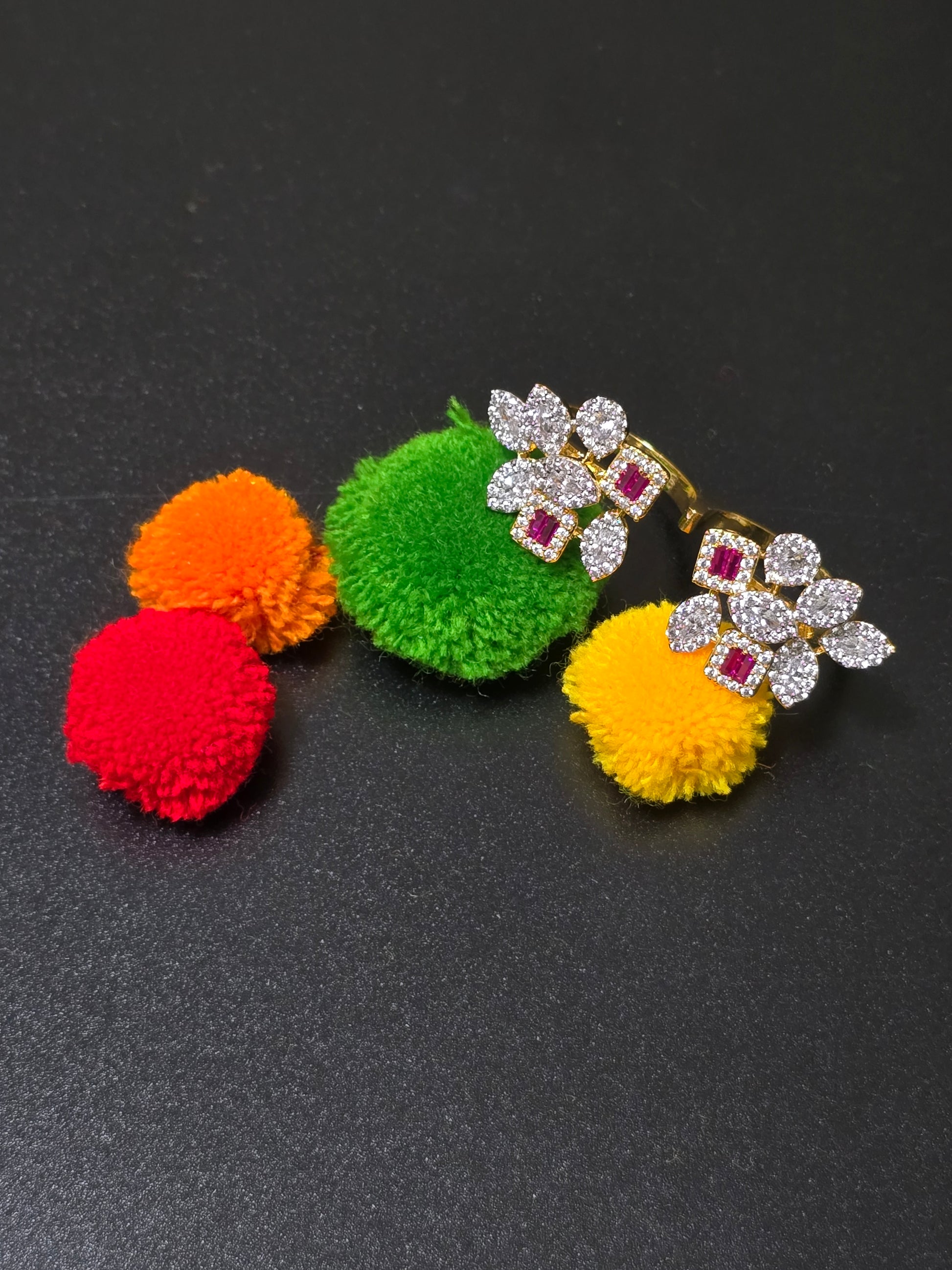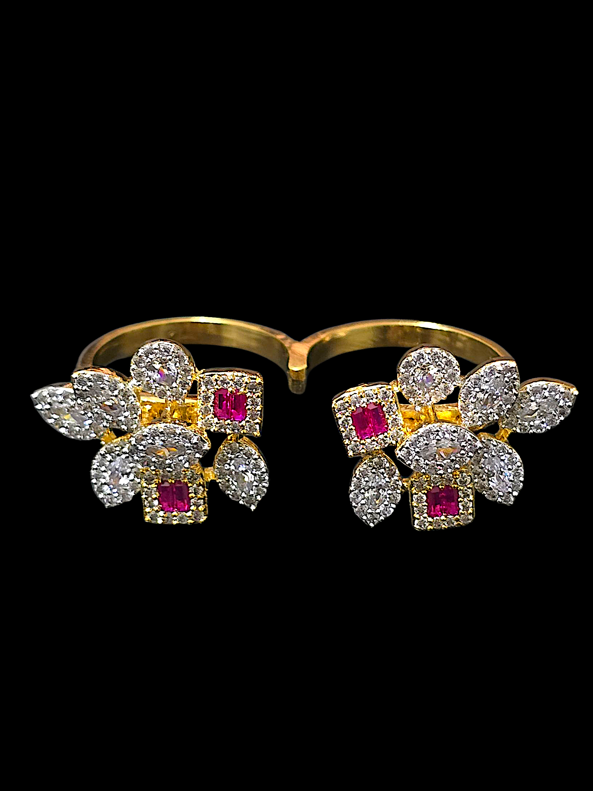 Designed with twin floral motifs adorned in glittering cubic zirconia stones and ruby-red accents, this ring brings together luxury and charm in every glance.