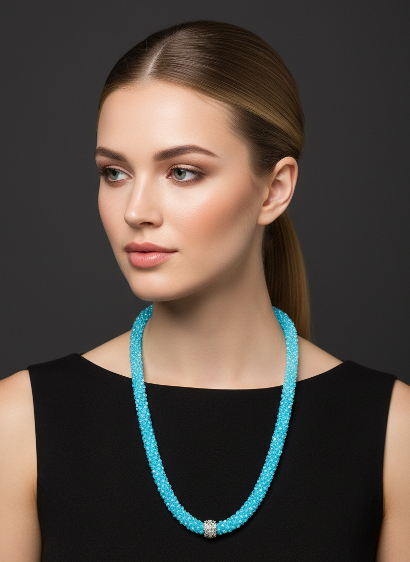 - Design : Sky-Blue Shimmer Long Beaded Necklace